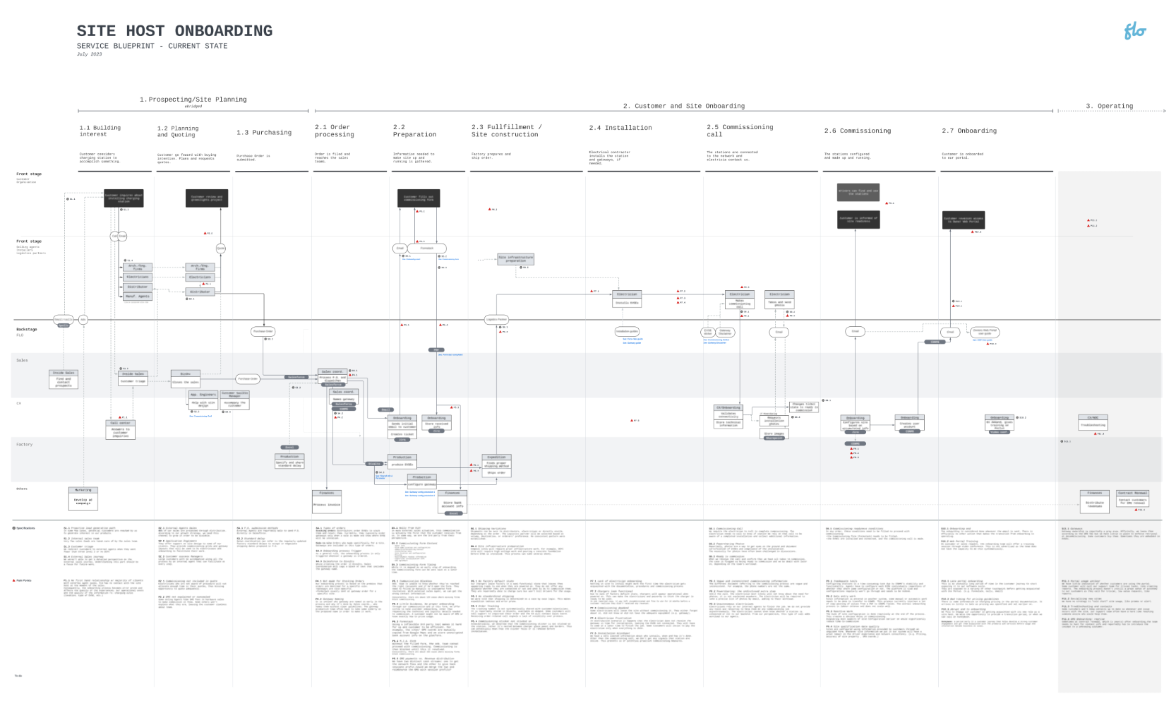 Additionally, I conducted in-depth interviews with partner organizations involved in the sale and deployment of sites. These conversations provided qualitative insights that fed directly into the service blueprint and subsequent strategy.